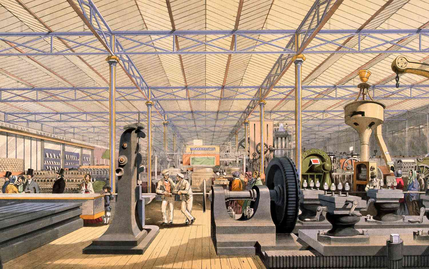 - 영국관 – 증기기관차, 코일 방적기, 워털루 전투 디오라마