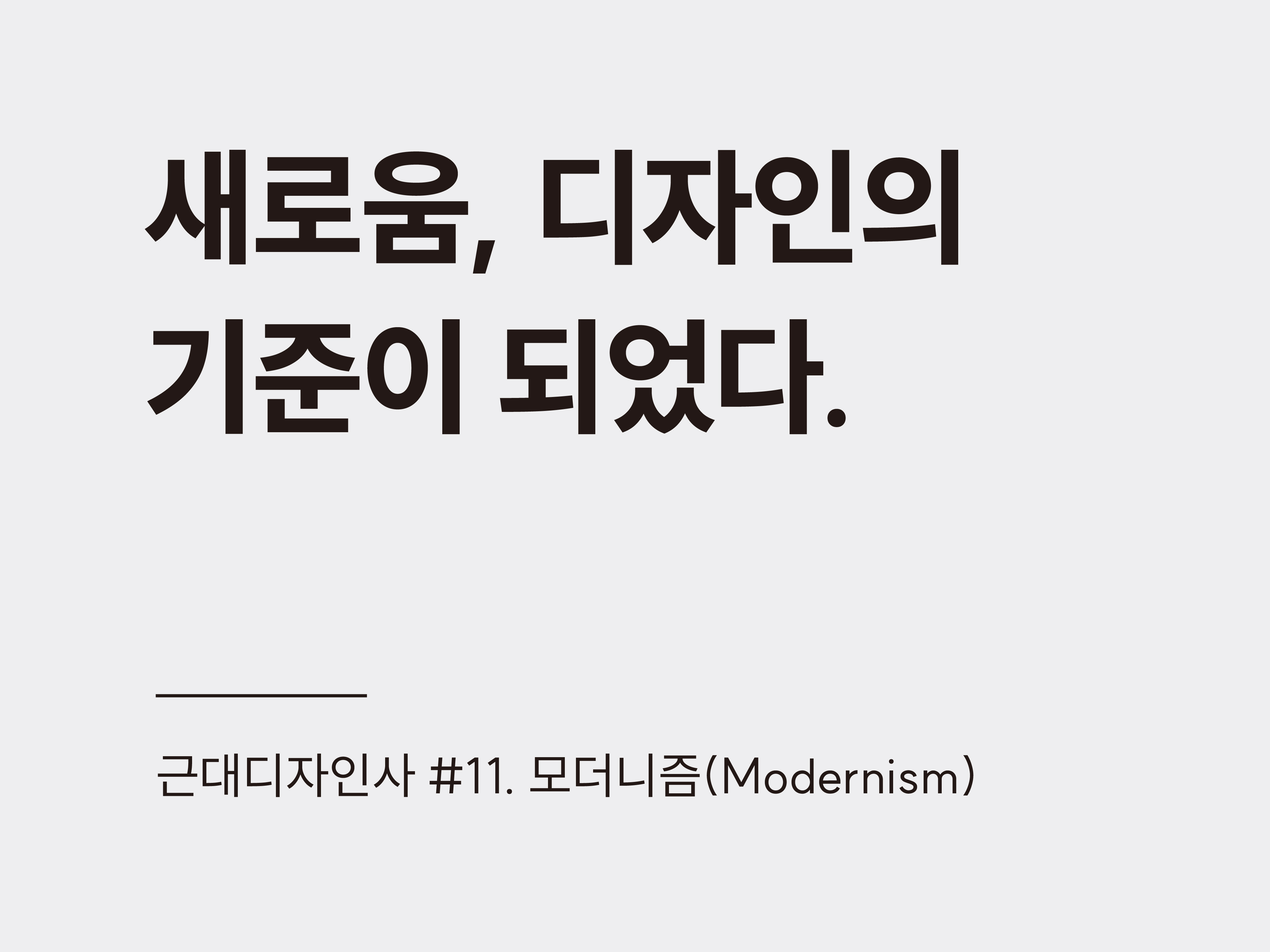 20세기 초, 세계는 전쟁과 산업혁명, 새로운 기술들로 빠르게 변하고 있었다. 말 대신 자동차가 달리고, 전등이 가스를 대신하며, 철과 유리가 도시의 풍경을 바꿨다. 이런 변화 속에서 예술과 디자인도 과거의 양식에 안주할 수 없었다. 새로운 시대에는 새로운 형태가 필요하다. 이것이 모더니즘의 출발점이었다.