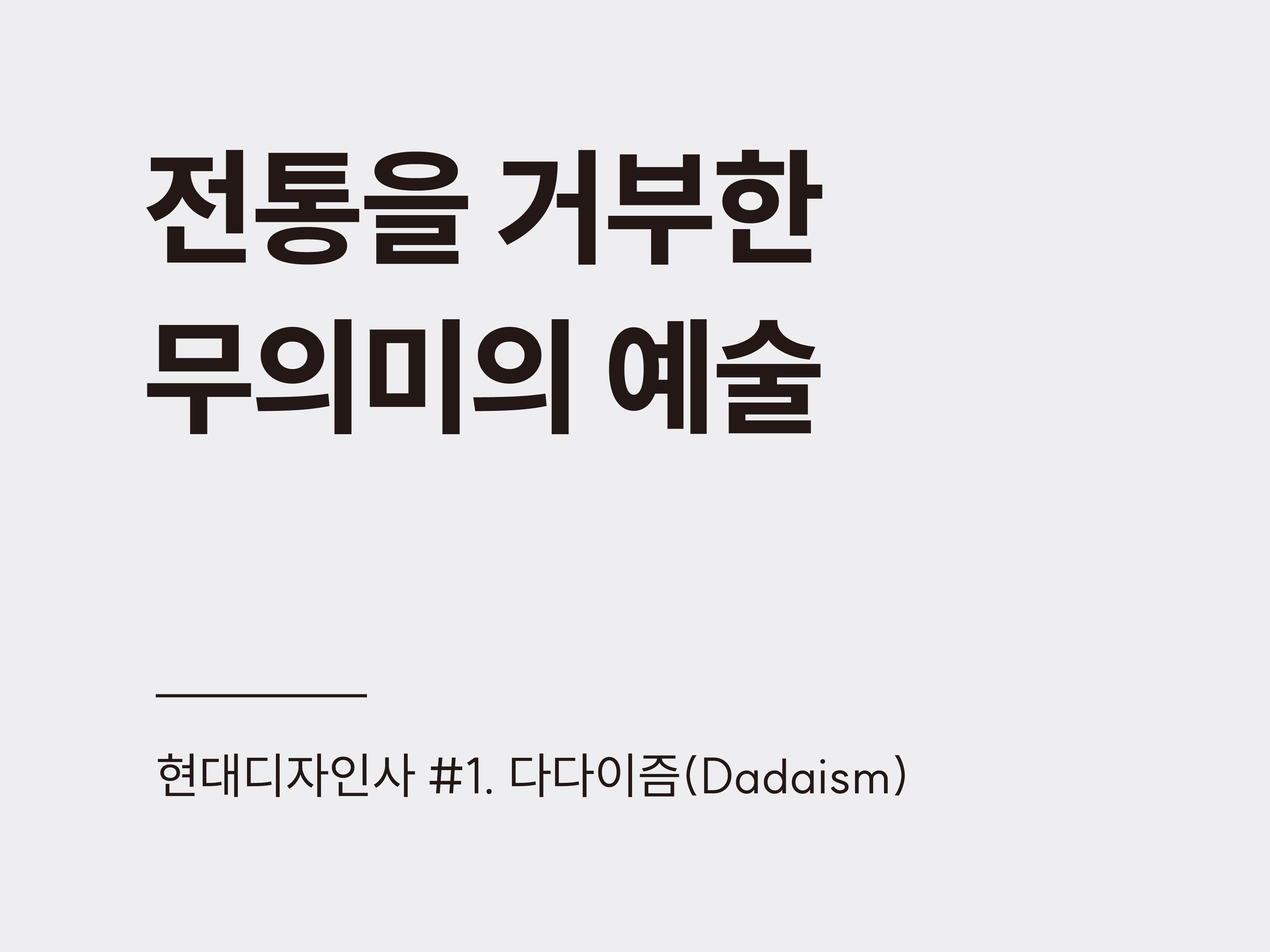 다다는 제1차 세계대전 중에 태어났다. 인류가 ‘이성’과 ‘문명’을 자랑하던 시대, 그 결과가 전쟁이었다는 사실은 예술가들에게 충격이었다. 그래서 그들은 외쳤다.