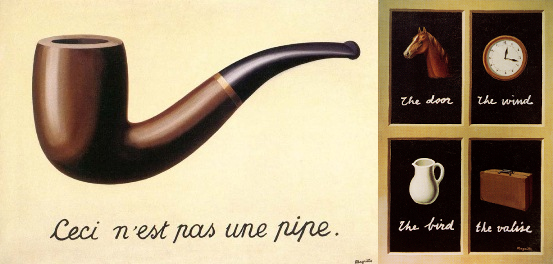 르네 마그리트(René Magritte)는 파이프 그림 아래에 “이것은 파이프가 아니다”라고 적어 언어와 인식의 모순을 드러냈다.