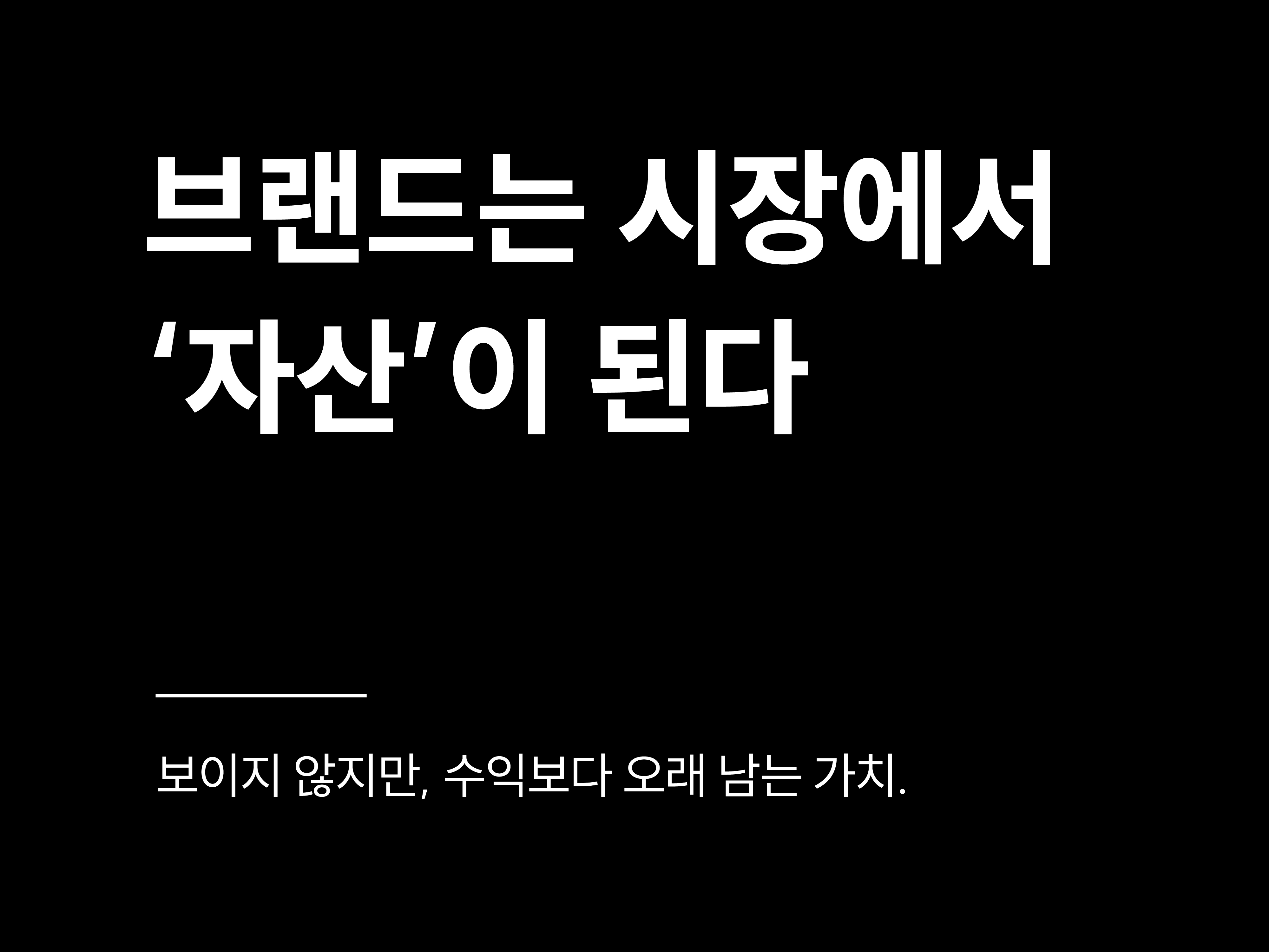 브랜드는 눈에 보이지 않지만, 가장 단단한 형태의 자산입니다. 그리고 그 자산은 매출보다 오래, 기억 속에서 불어납니다.